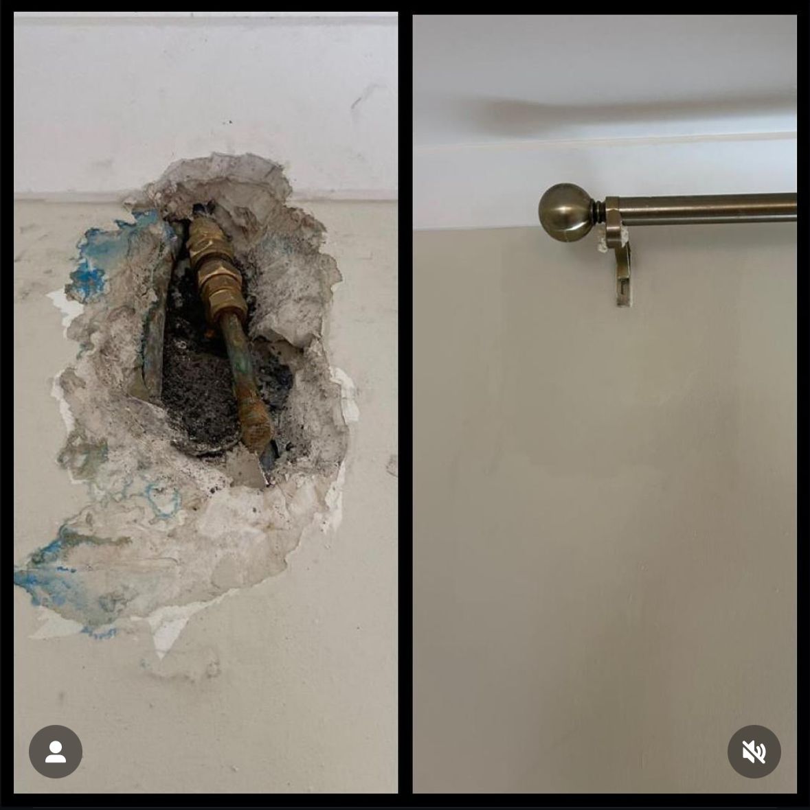 "The damaged wall and pipe were fixed so neatly, it looks like nothing ever happened."
